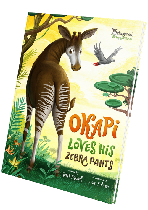 Okapi loves his striped legs until a naughty chimpanzee teases him for stealing “zebra pants”. Suddenly his special stripes don’t feel special. They feel terrible!