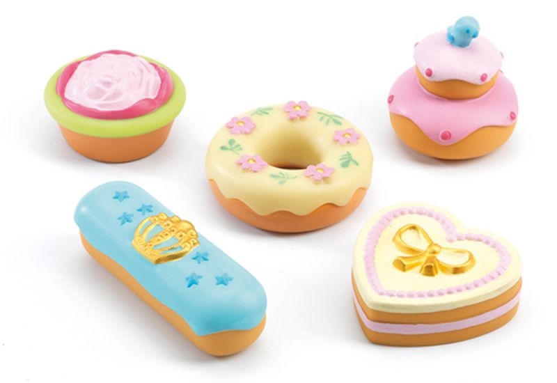 5 soft plastic cakes to use for a fun afternoon of pretend play.