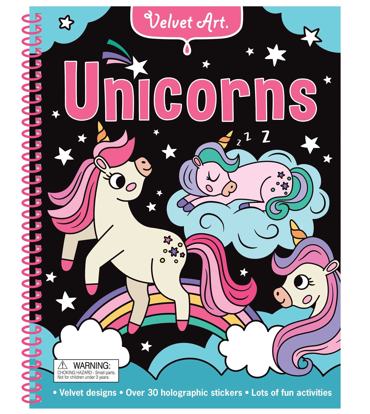 Immerse yourself in the magical world of unicorns with Velvet Art: Unicorns! This spiral-bound activity book includes holographic stickers, activities and velvet-edged coloring pages.This spiral-bound book is filled with captivating velvet coloring pages and fun activities featuring enchanting unicorns. Perfect for kids ages 3 and up, this activity book offers hours of creative entertainment, combining the relaxing art of coloring with engaging puzzles, mazes, and games. The velvet touch of the pages enhances the coloring experience, making each design come to life as your little one adds their unique colors. Whether your child loves unicorns or enjoys creative activities, this book is sure to spark joy and creativity in every young artist.