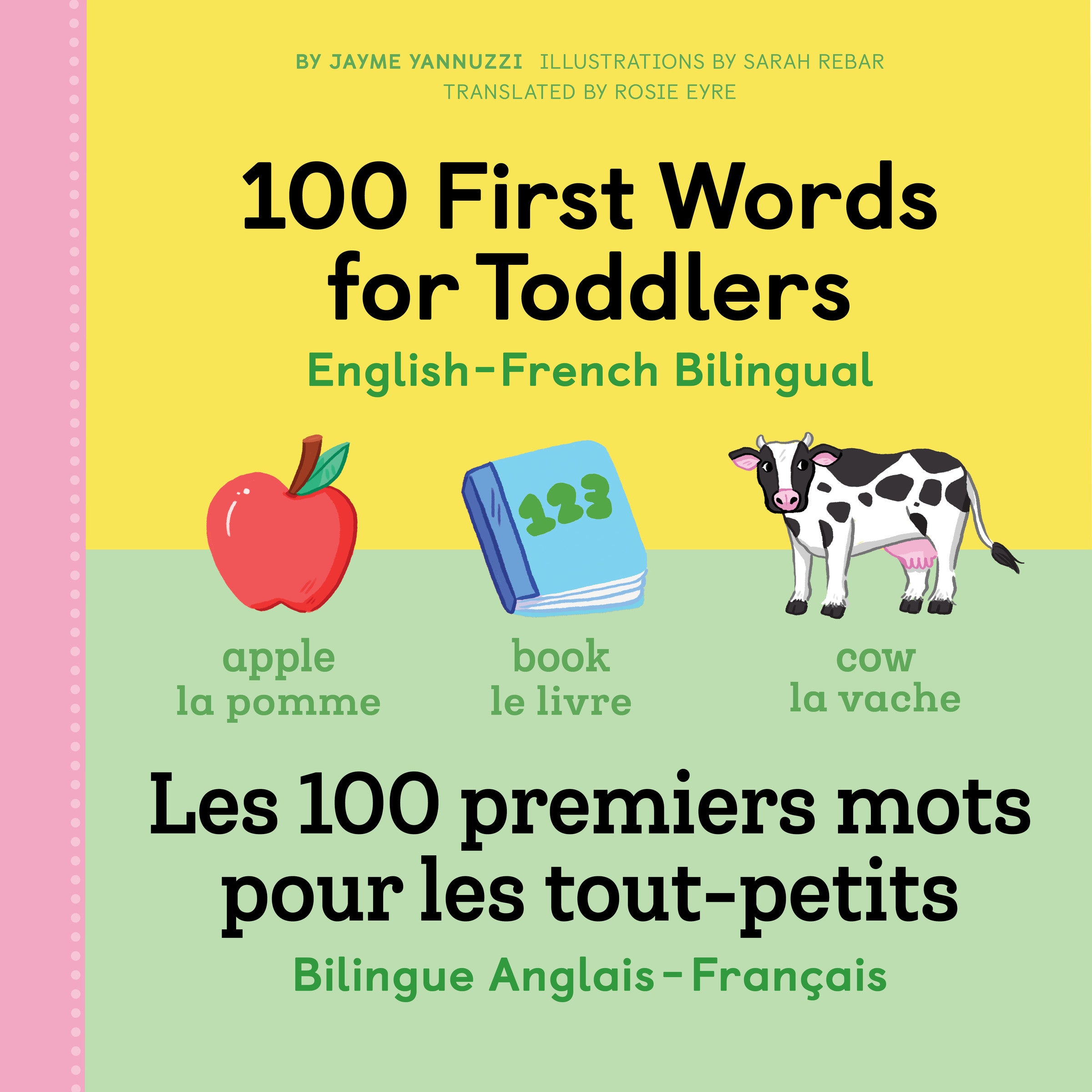 100 first words—Grow your toddler's vocabulary with a variety of everyday words, each presented in both English and French.