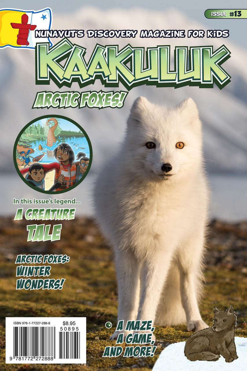 Kaakuluk: Arctic Foxes includes interesting facts about Arctic foxes—like how the adapt to living in the Arctic! This issue shares traditional knowledge of and uses for Arctic foxes. It also includes a traditional story, a maze, and a game.