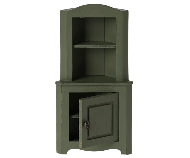 The perfect closet to store a lot of stuff. It fits perfectly into a corner so it will look stylish in the home decoration. It has a vintage finish - variation in the paint may occur. This closet fits perfectly into the mouse hole farm house.