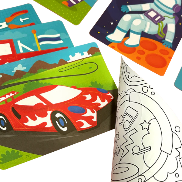 This foil art kit is the perfect balance of coloring and crafting! It includes 12 double-sided pages, each with a different design set including: whimsical creatures, awesome animals, and gadgets & gizmos. One side of each page is for decorating with shimmery foil, the other is for coloring in. 24 bright foil sheets are also included, so your little one can create their own shiny masterpiece. This foil art is for kids who love to spend afternoons being creative!