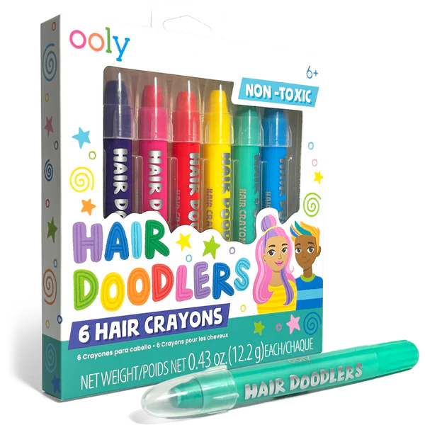 Whether it’s for Halloween, parties, or a day where you’re all about turning your brown hair blue, this set of hair crayons is a must-have! It includes a rainbow of 6 temporary colors, so there’s no limit to what you can create! Designed to be quick drying, these non-toxic crayons for hair wash out easily, just like hair chalk, so it’s no fuss to change it up as often as you like. Each hair color crayon also has a twist up mechanism on the barrel - just turn it whenever your color runs low. Be sure to get this set for your crazy hair day or birthday party!