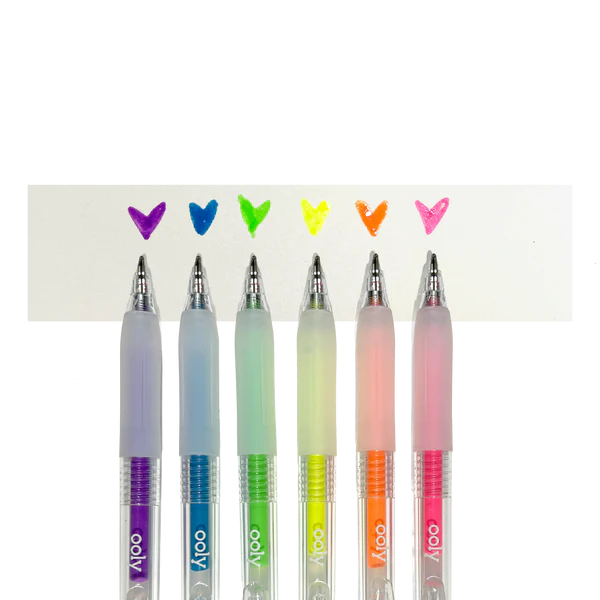 - Set of 6 neon gel pens with dimensional, glossy ink