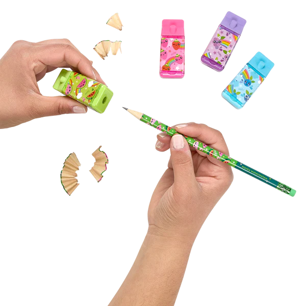 Choose from strawberry, watermelon, blueberry or berry scented juicy box shaped eraser or use a new cute eraser everyday. And to keep your pencils at their best, use the built in sharpener to get your point across! Lil’ Juicy Box Scented Erasers and Sharpener will add smiles to your face.