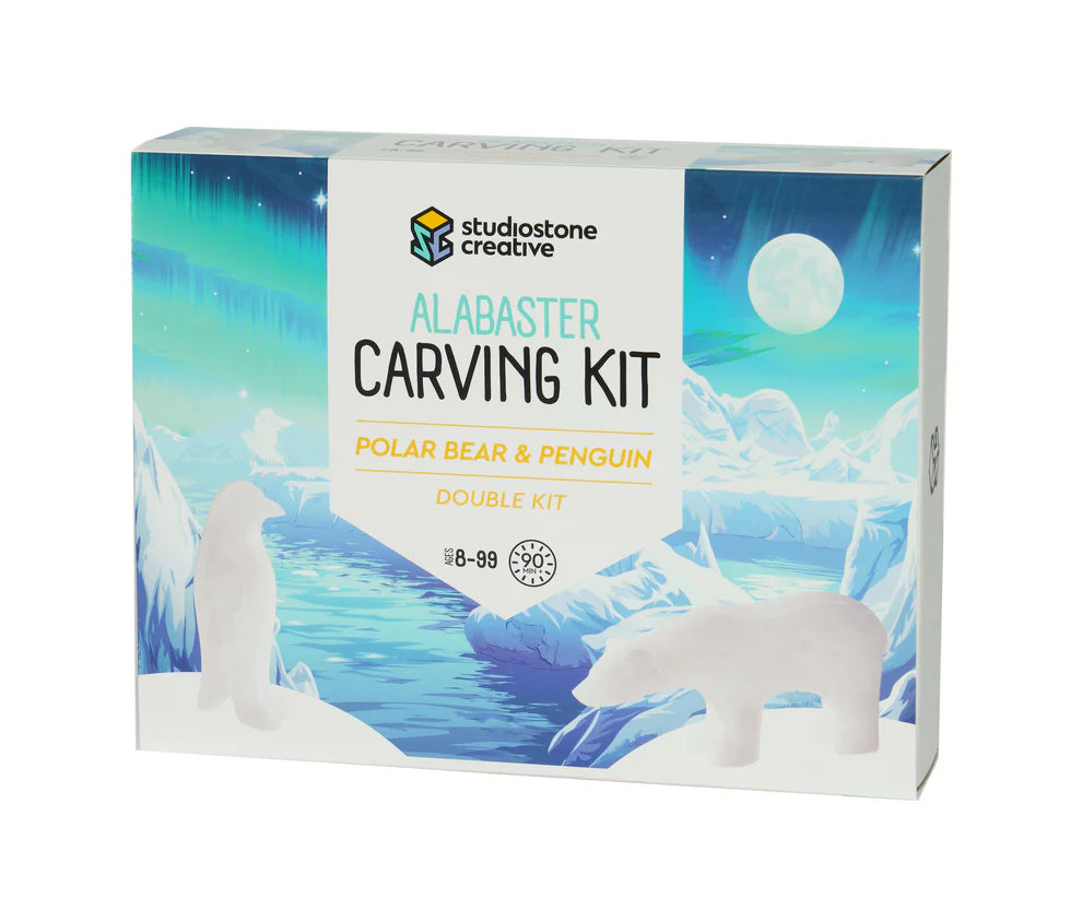Try the new Alabaster stone carving kits.  Alabaster is a semi-translucent stone from Spain and finishes a beautiful white. Use water to shape the stone with all supplies included in our premium level kit.