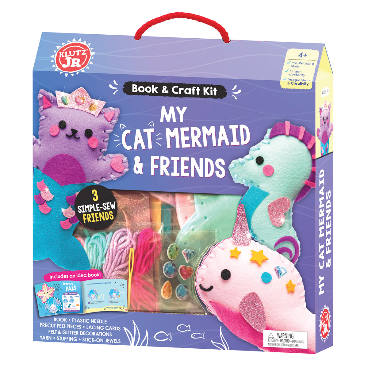 Build fine motor skills and learn to sew with a cat-tastic mermaid and her sweet sea critter friends. Start with simple lacing cards featuring a seashell and sea star, before you dive into the three felt projects: seahorse, narwhal, and a cute cat mermaid. Get creative by decorating your undersea friends with felt stickers and glittery embellishments. (Because every mermaid needs a crown!)