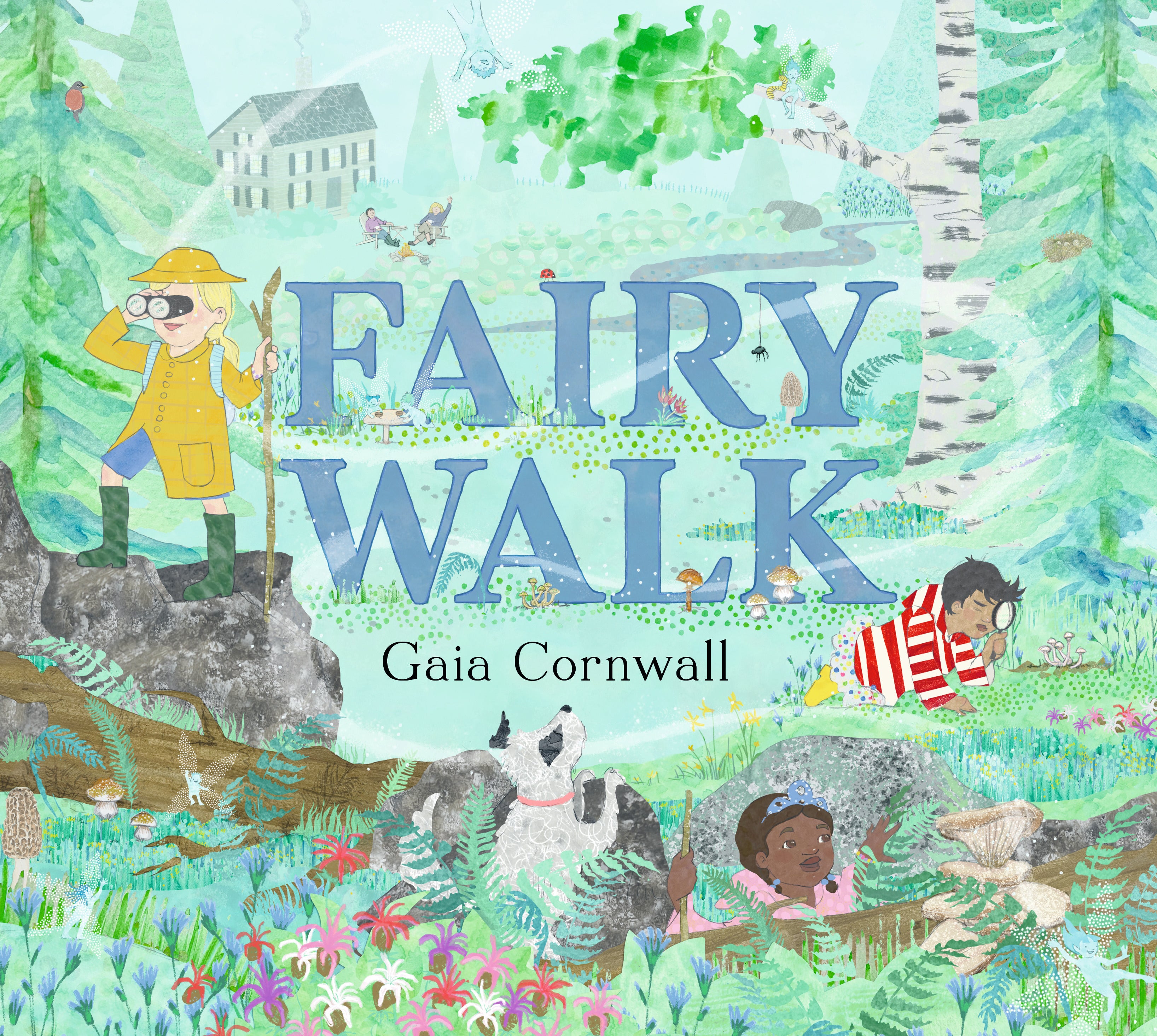 Let’s go, let’s go! Hopping and skipping into the woods behind their house, a trio of kids and their loyal doggy companion head off into the wild world in search of fairies. Their explorations lead them across a babbling brook and through bushes and meadows of fragrant honey snowdrops and bee balm. But where are the fairies? They peer under heavy rocks and peek under fleecy carpets of moss, finding dragonlike salamanders and scampering creepy-crawlies, but no fairies. The adventurers don’t lose hope, though—if they look very closely and listen hard enough, there’s always magic to be found in the woods! Gaia Cornwall has crafted an enchanting story that celebrates flights of fancy, curiosity, and the wonder to be found in the natural world.
