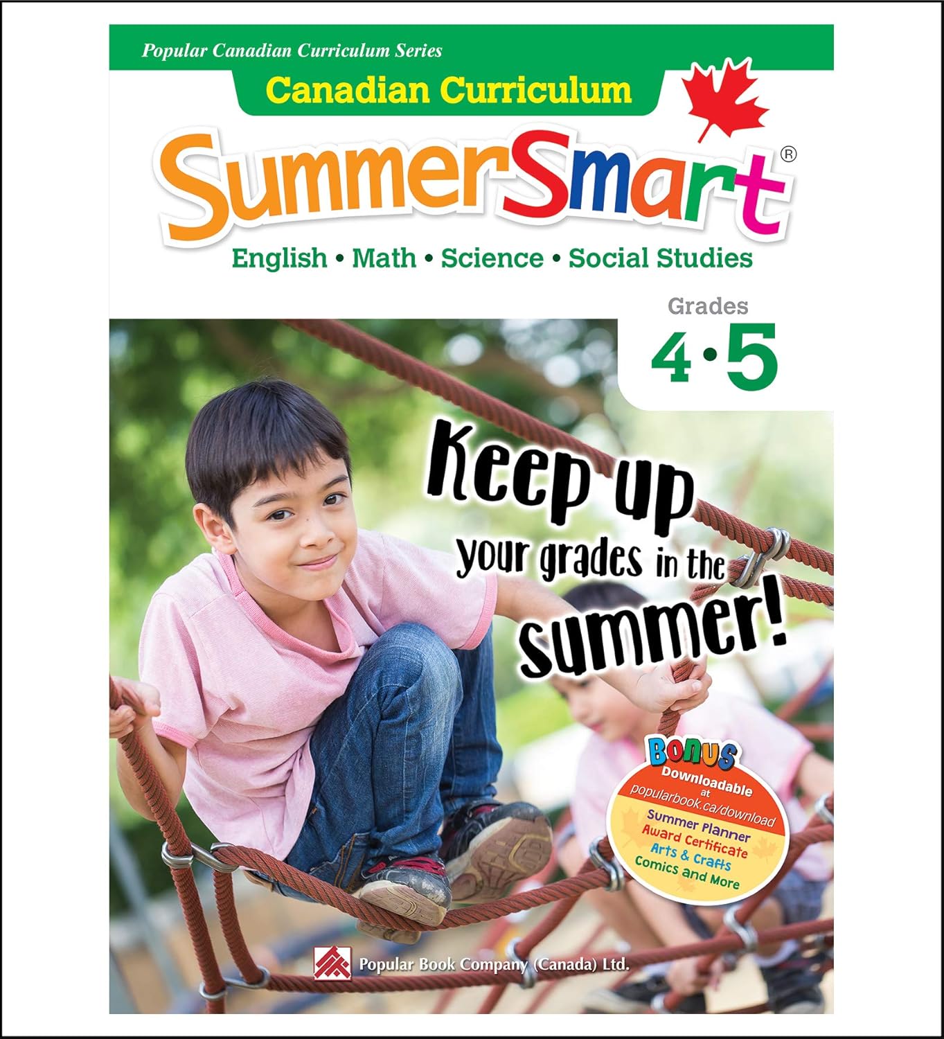 Canadian Curriculum SummerSmart 4 ? 5 provides children with a relaxed and engaging way to retain knowledge acquired in Grade 4 and prepares them for Grade 5. In the spirit of summer fun, Canadian Curriculum SummerSmart 4 ? 5 combines activities that review core concepts from English, Math, Science, and Social Studies into concise weekly units designed to require only a short yet reasonable amount of time to complete. Topics covered include adverb and adverb phrases, measurements, the properties of minerals, the Canadian government, and many more. There are also engaging Arts and Crafts activities, as well as Comics and Fun Places to Go in Summer for leisure reading. Additional bonus content is available online as well along with a weekly planner to help schedule practice for your child. We are confident that Canadian Curriculum SummerSmart 4 ? 5 will help prepare your child for academic success in the upcoming school year.