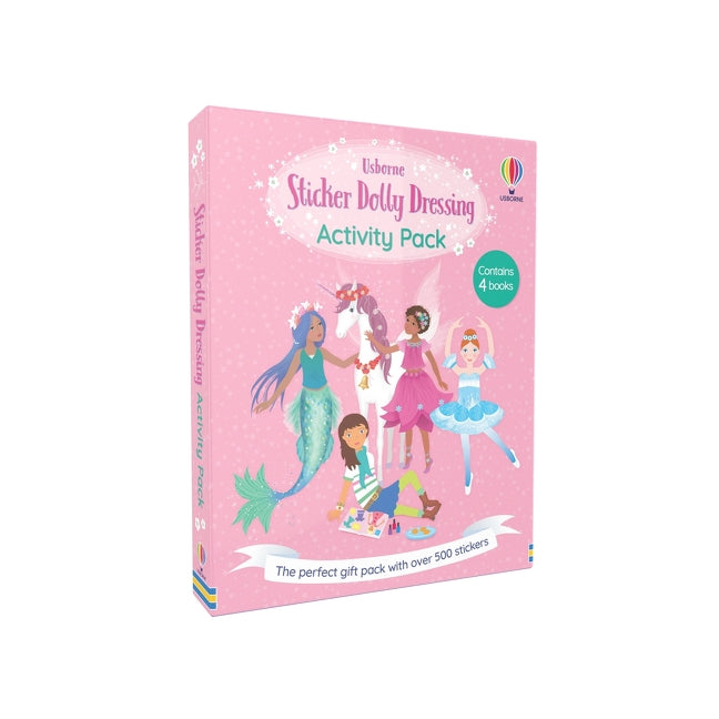 Enter the fun-filled world of Sticker Dolly Dressing with this boredom-busting activity pack, containing 4 bestselling sticker books. From magical mermaids and unicorns to charming ballerinas and best friend adventures, there are over 100 stickers in every book to decorate the adorable scenes with. Perfectly sized to fit into purses for on-the-go activity fun.