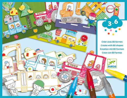 A wealth of shapes to invent your own creations. Complete with stencils, colouring, and  collages- there are so many options for creative play.