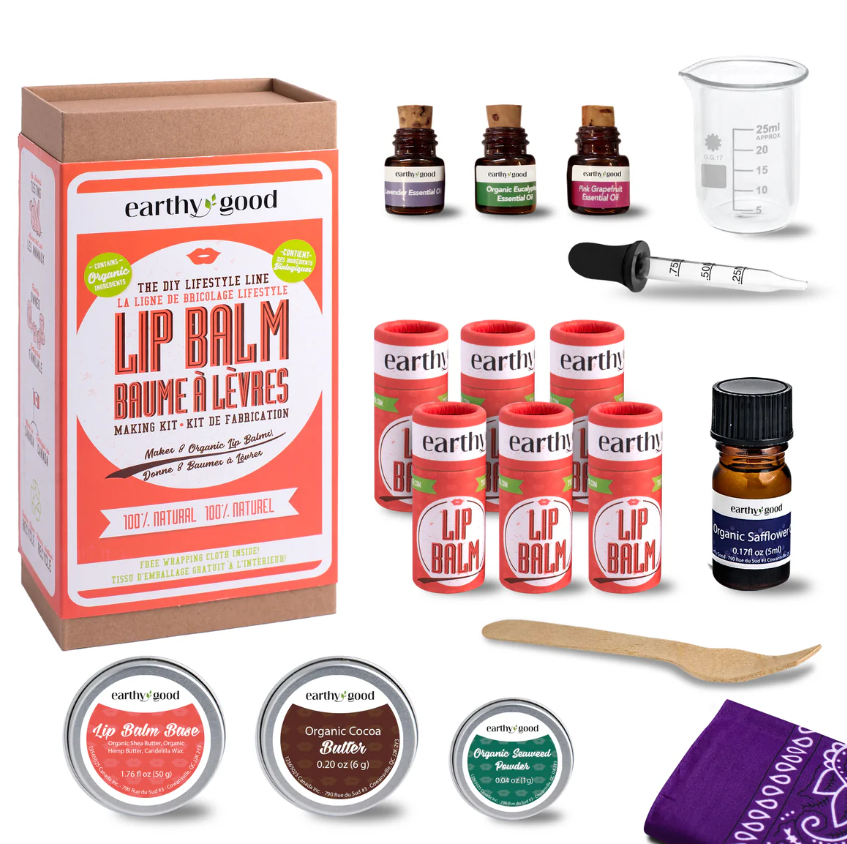 Natural, giftable items: make 8 lip balms in this kit with animal friendly products and recyclable and upcyclable packaging